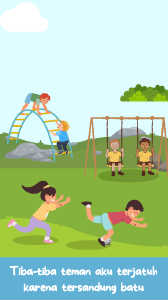 Tiba-tiba teman aku terjatuh karena tersandung batu