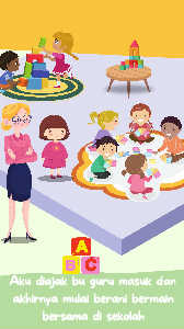 Aku diajak bu guru masuk dan akhirnya mulai berani bermain bersama di sekolah
